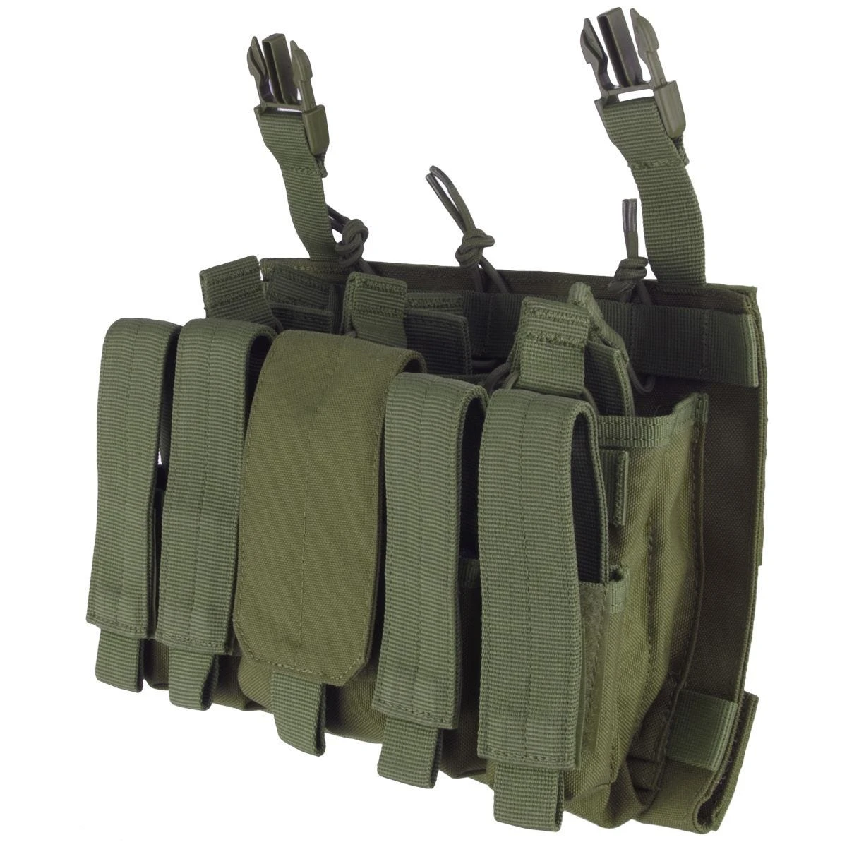 panel and male buckle ends, it allows holding up to six M4 magazines and
