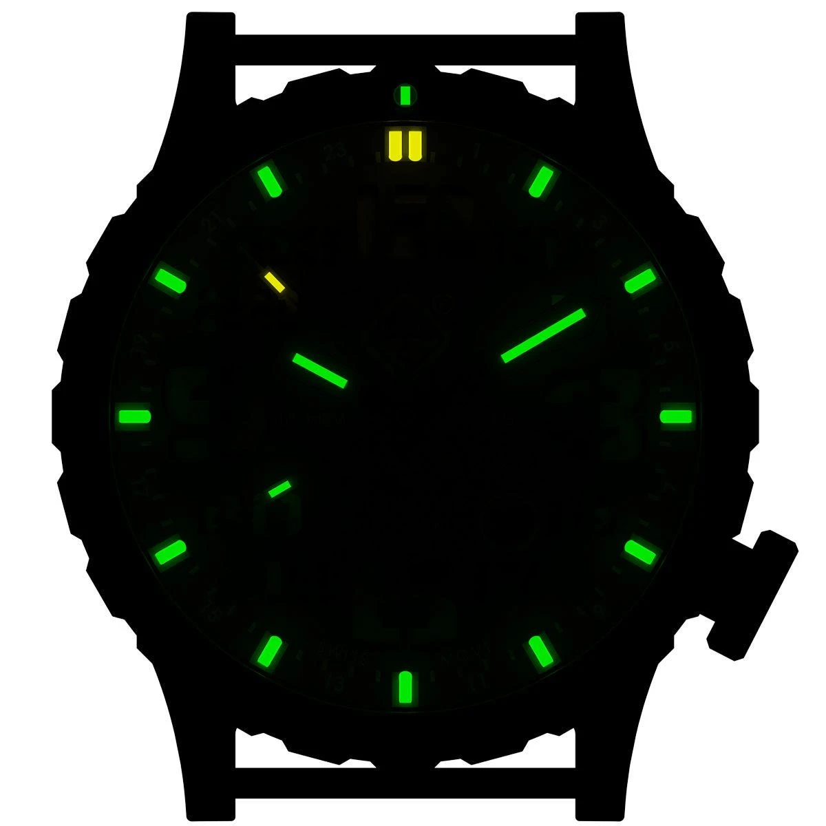 24-hour military time scale - Angled minutes inner-dial for increased visibility
