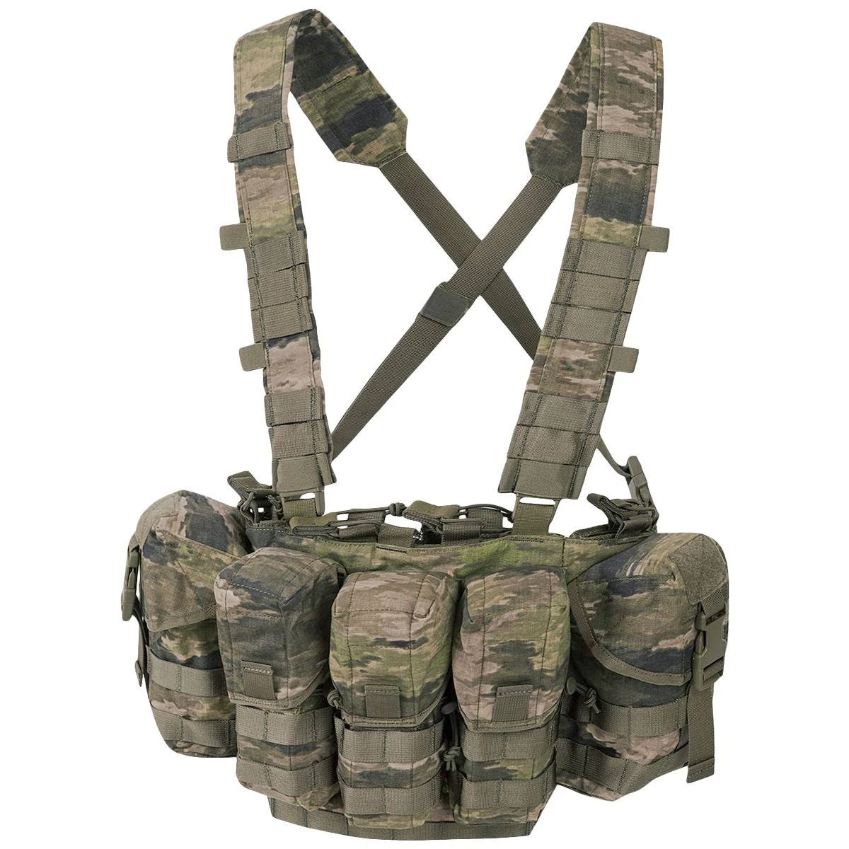 This quality chest rig, designed to work along with a backpack and belt